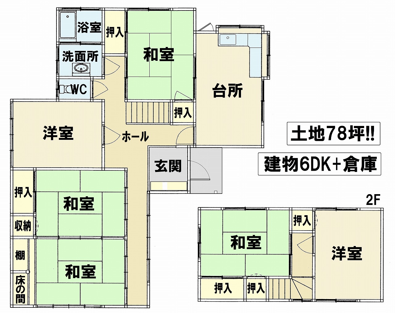 | 間取り | 6DK | 補修 | 多少必要(入居者負担) |